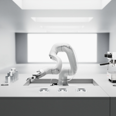 O E0509 é o cobot da Doosan para produção de alimentos e bebidas. Possui proteção IP66 e certificação NSF, portanto, se encaixa em ambientes limpos. O design facilita a limpeza e é seguro para as pessoas trabalharem ao lado dele.